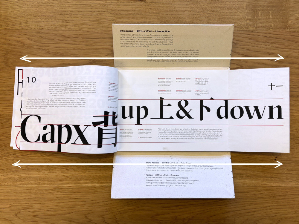The book aimed to be an illustrated introduction to Latin and Japanese typography through an unconventional format that invited exploration. Addressing what makes each writing system unique and how do they compare to each other. Typography was not only the textual content of the book but also its visual mechanism to illustrate the ongoing discussion.